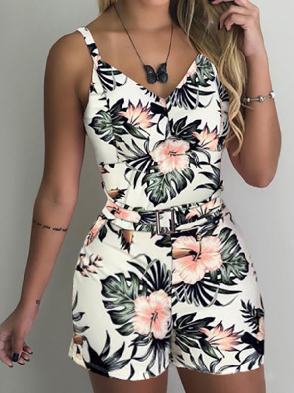 Fashion Sexy Print Suspender Suit Shorts