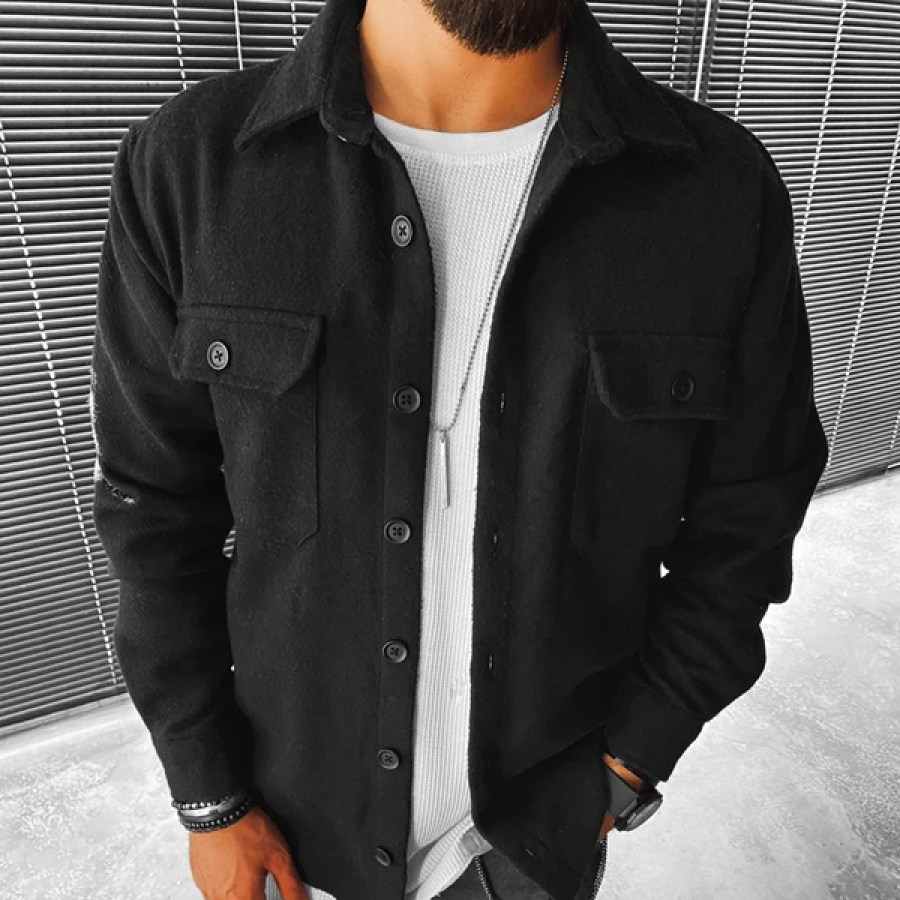 shirt jacs,fashion street solid color pocket look jacket