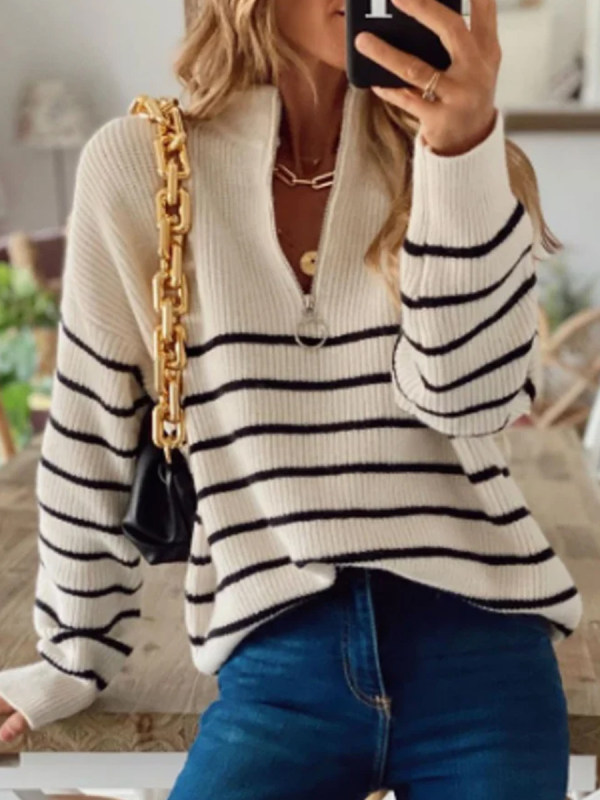 Fashion Striped Printed Zipper Sweater