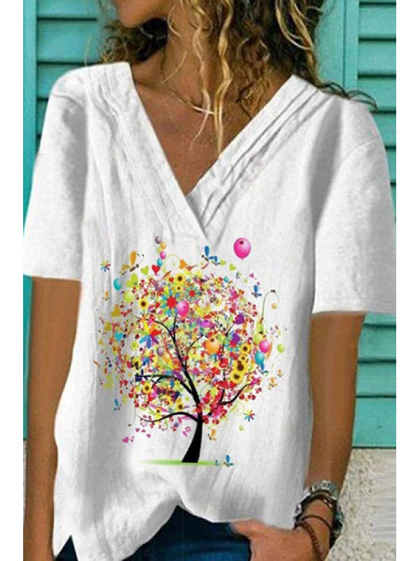 Fashion V-Neck Irregular Loose Print T-Shirts