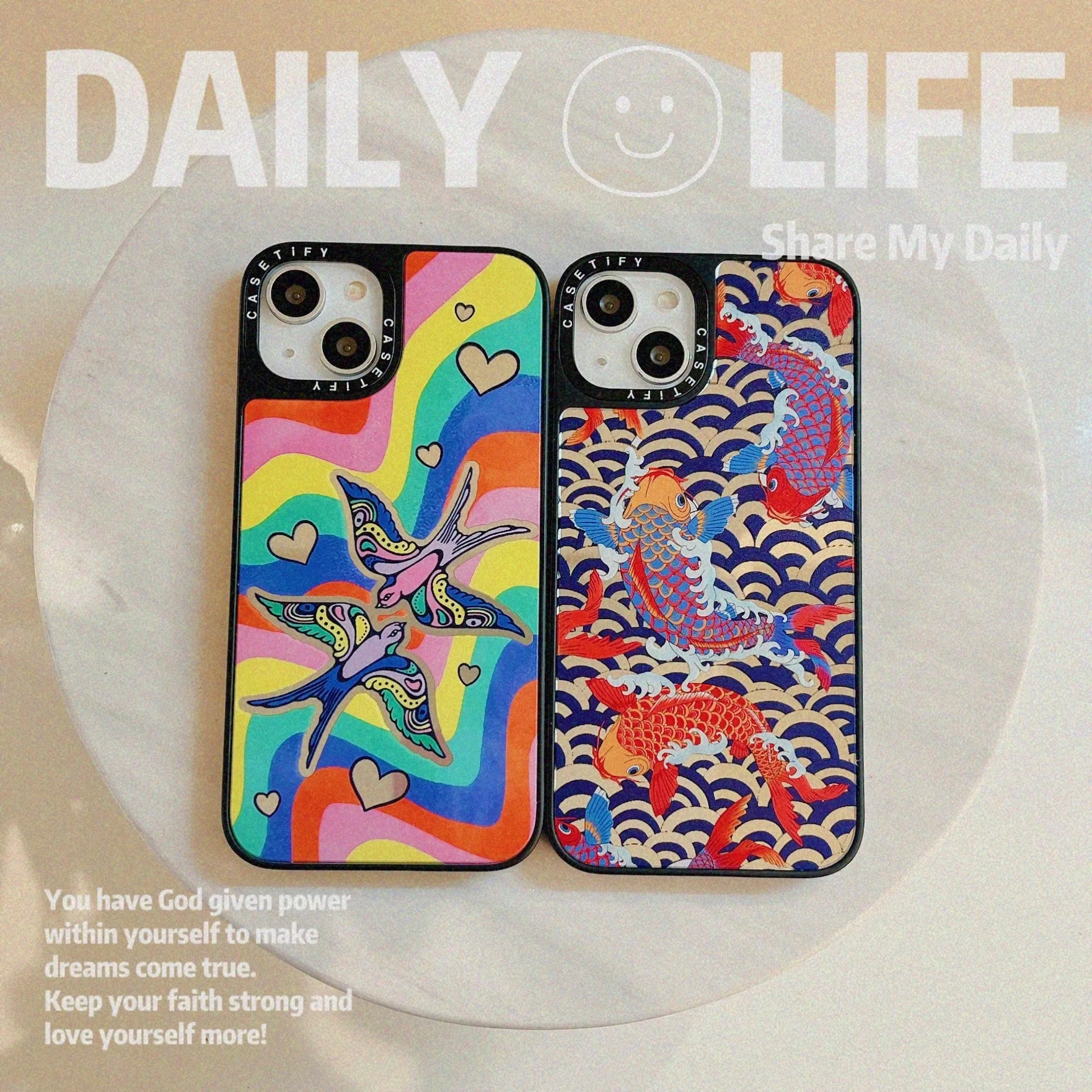 Fashion personality cartoon mandarin duck carp couple shockproof soft silicone phone case for 11 12 13 Pro Max X XR XS 8 7 Plus