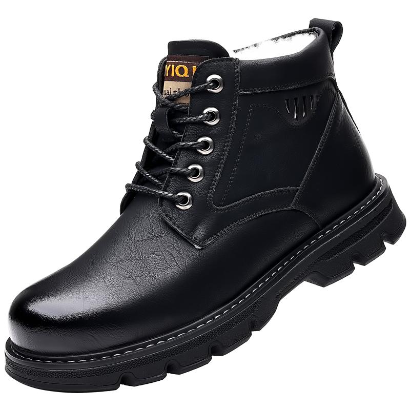 Fashion2024 Зимние плюшевые теплые хлопковые туфли для мужчин, зимние ботинки, удобные толстые мужские ботинки с высоким верхом, холодные ботильоны, бесплатная доставка 44 чёрный