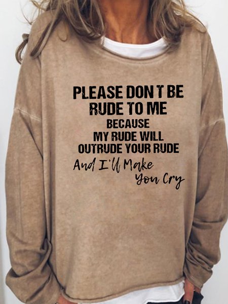 Please Dont Be Rude to Me Casual Sweatshirt, Light brown, Hoodies&Sweatshirts