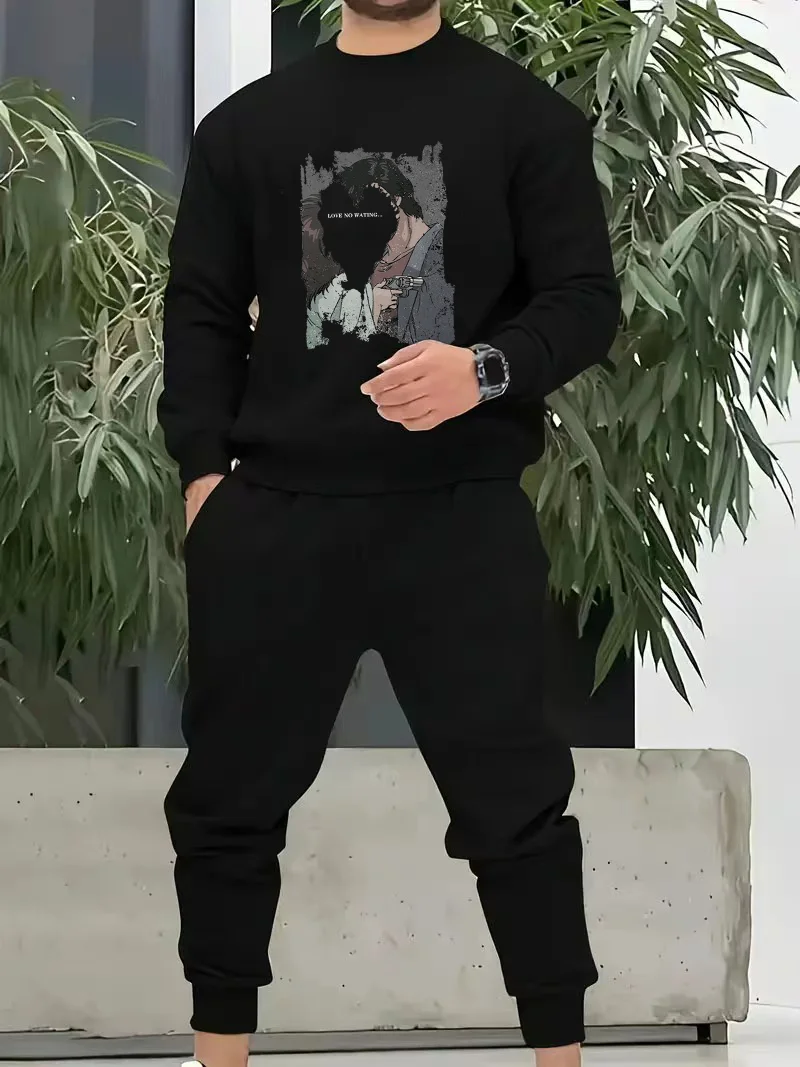 Мужские комплекты с капюшоном, осень 2024, толстовки с длинными рукавами, спортивные костюмы Y2k, спортивный костюм, пуловер из полиэстера + длинные брюки, комплект из двух предметов