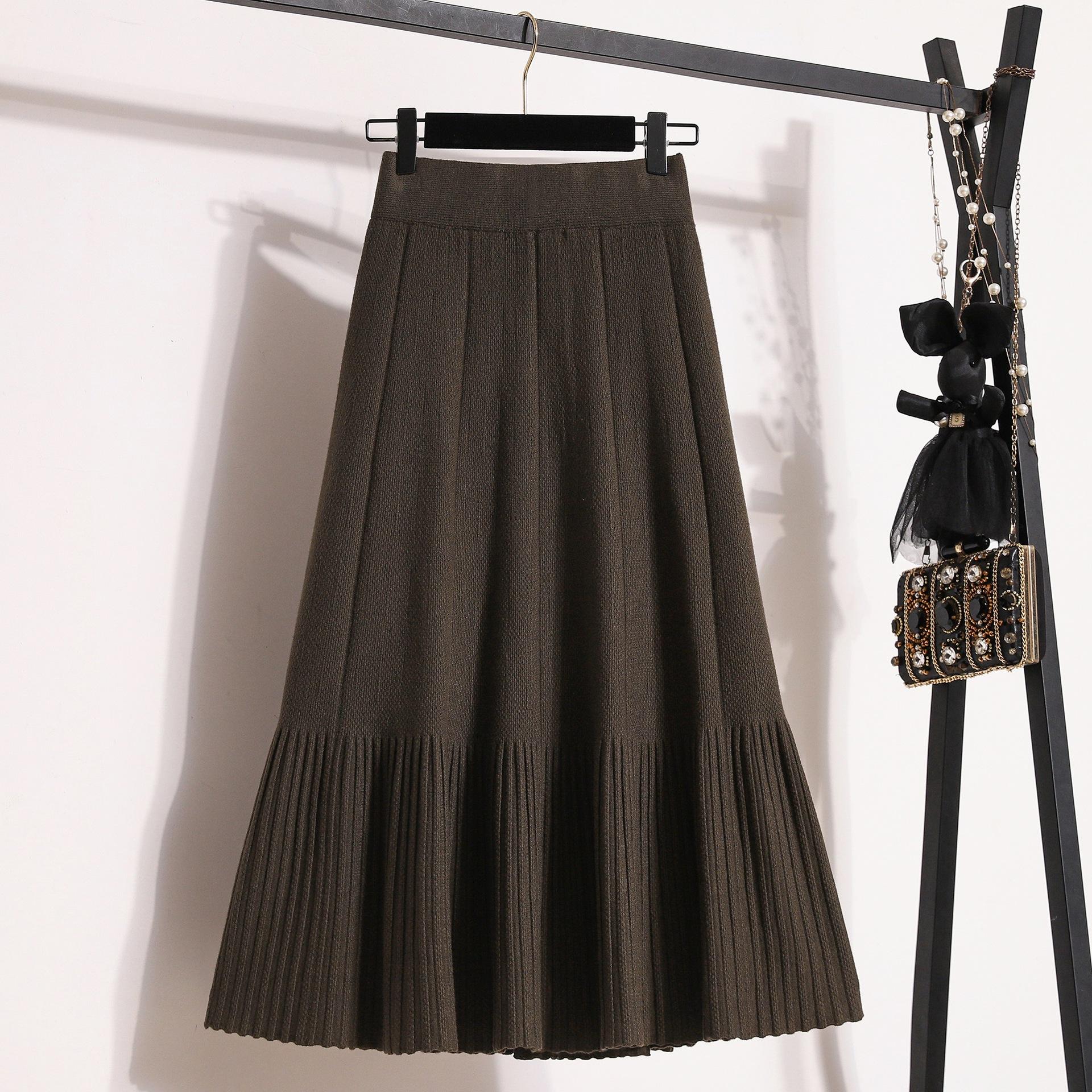 Fat Mm Корейский стиль Универсальная и модная, уменьшающая возраст, утягивающая трикотажная юбка средней длины с оборками XXXXL