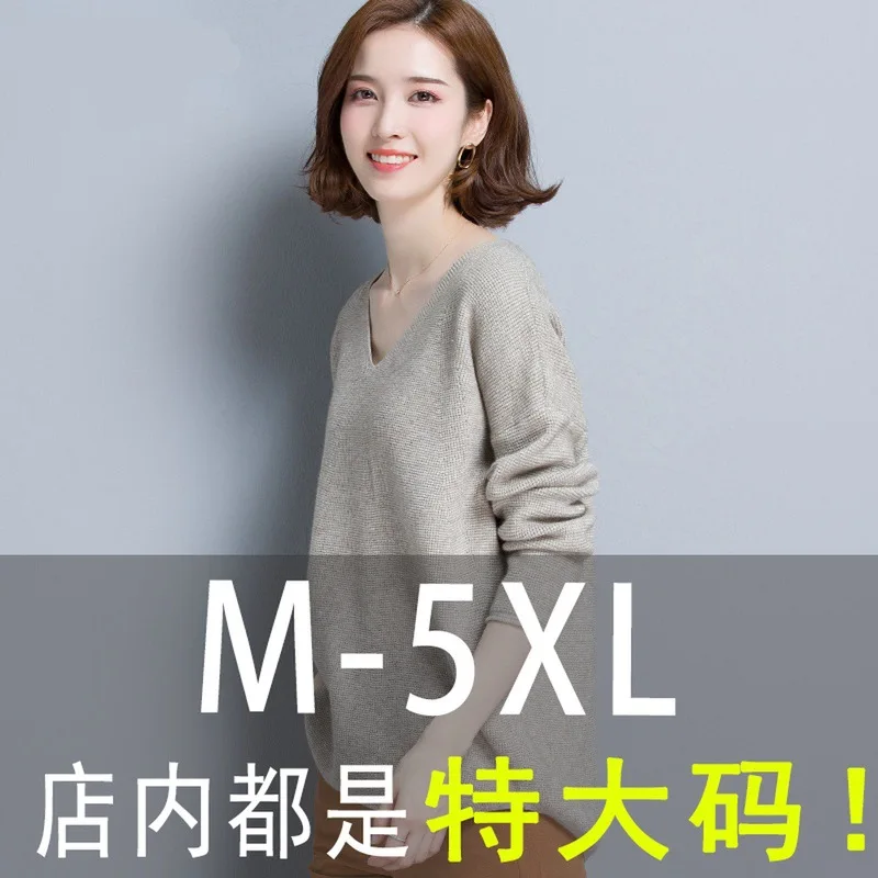 Fat Mm Autumn Clothing Belly Covering by Age Tops Women's Large GIRL'S Knit Low Waist Jersey Plus-sized Loose-Fit V Neck Sweater