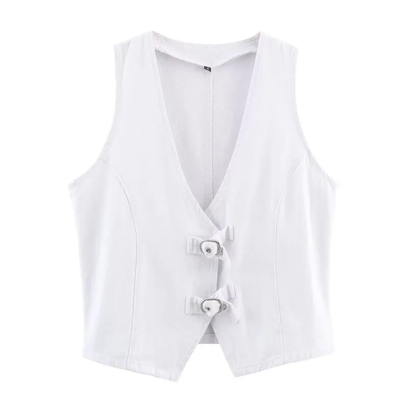 Лето 202, женский повседневный джинсовый жилет с высокой талией, комплект из двух предметов, V-образный комплект на пуговицах, моющийся, удобный, дышащий