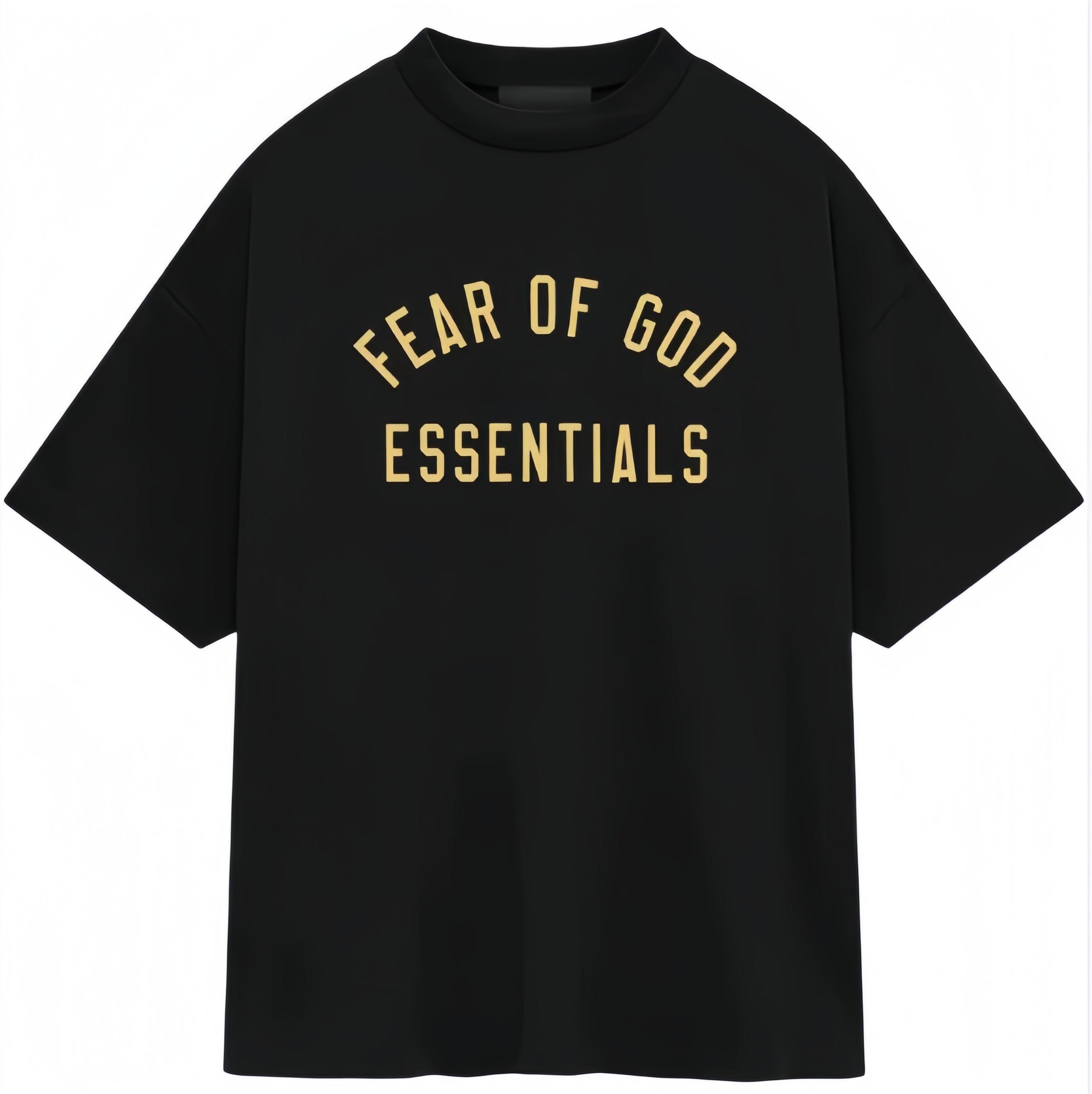 Fear of God Essentials Осень24 В ШКОЛУ Трикотажная футболка с круглым вырезом - Мужская черная футболка с коротким рукавом и принтом логотипа, тяжелая, американская L
