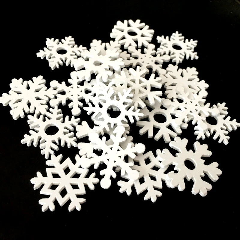 50Pcs White Wooden Christmas Embellishments Snowflakes Christmas Ornaments Xmas Pendants for DIY Craft Scrapbooking Card