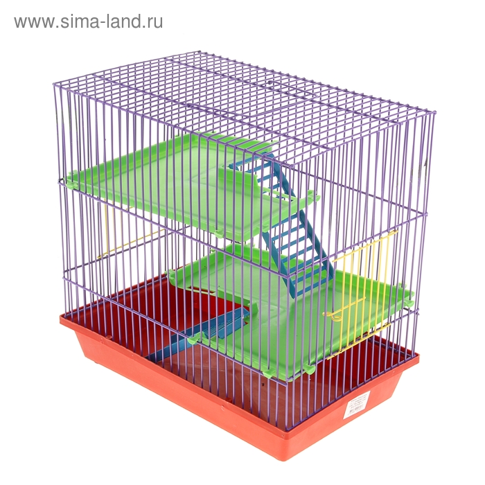 Клетка для грызунов 3-эт, пластиковые полки, лесенки, 36 х 24 х 38 см микс цветов