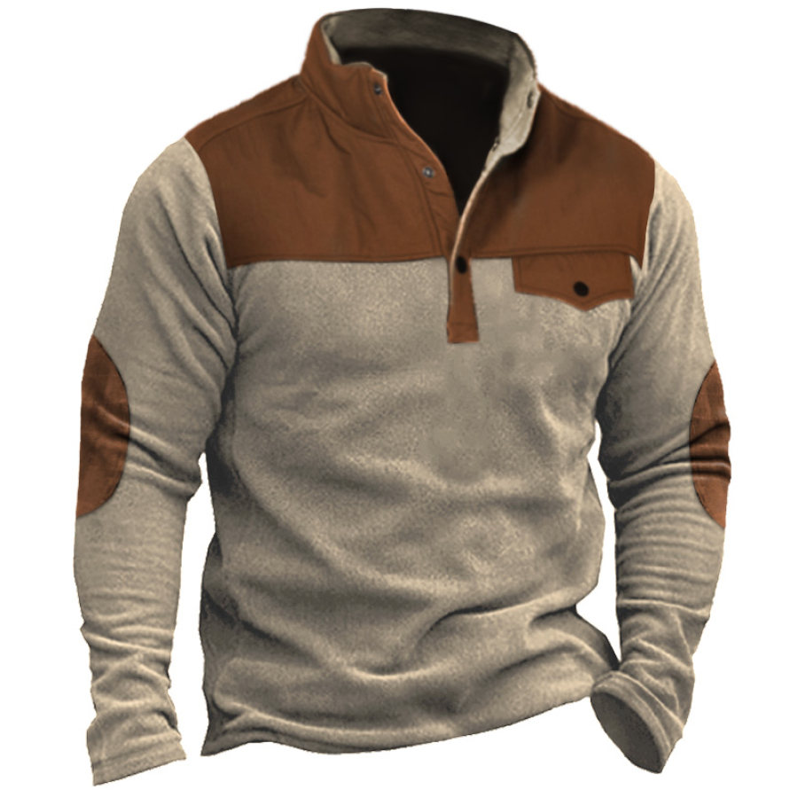 Felpa Calda Da Uomo In Pile Colorblock Da Esterno