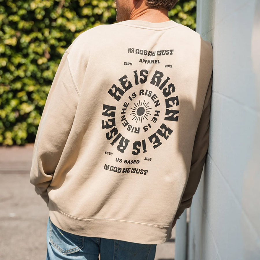 Felpa Da Uomo HE IS RISEN Stampata Girocollo Casual
