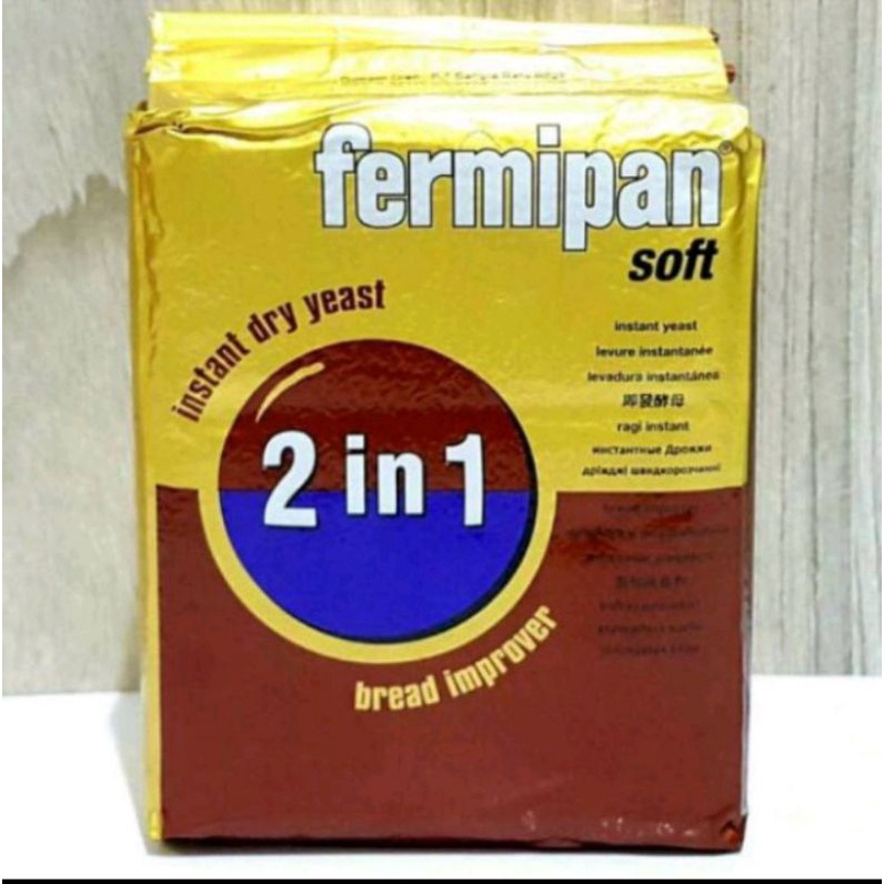 memiliki kandungan bread improver dan campuran enzim yang lainnya, sehingga tidak perlu lagi membeli ragi instant dan bread improver karena di dalam Fermipan 2 In 1 sudah terkandung itu semua. Hanya dapat digunakan untuk adonan roti, donat, kue apem, martabak, bakpau, bukan cake, atau kue kering.