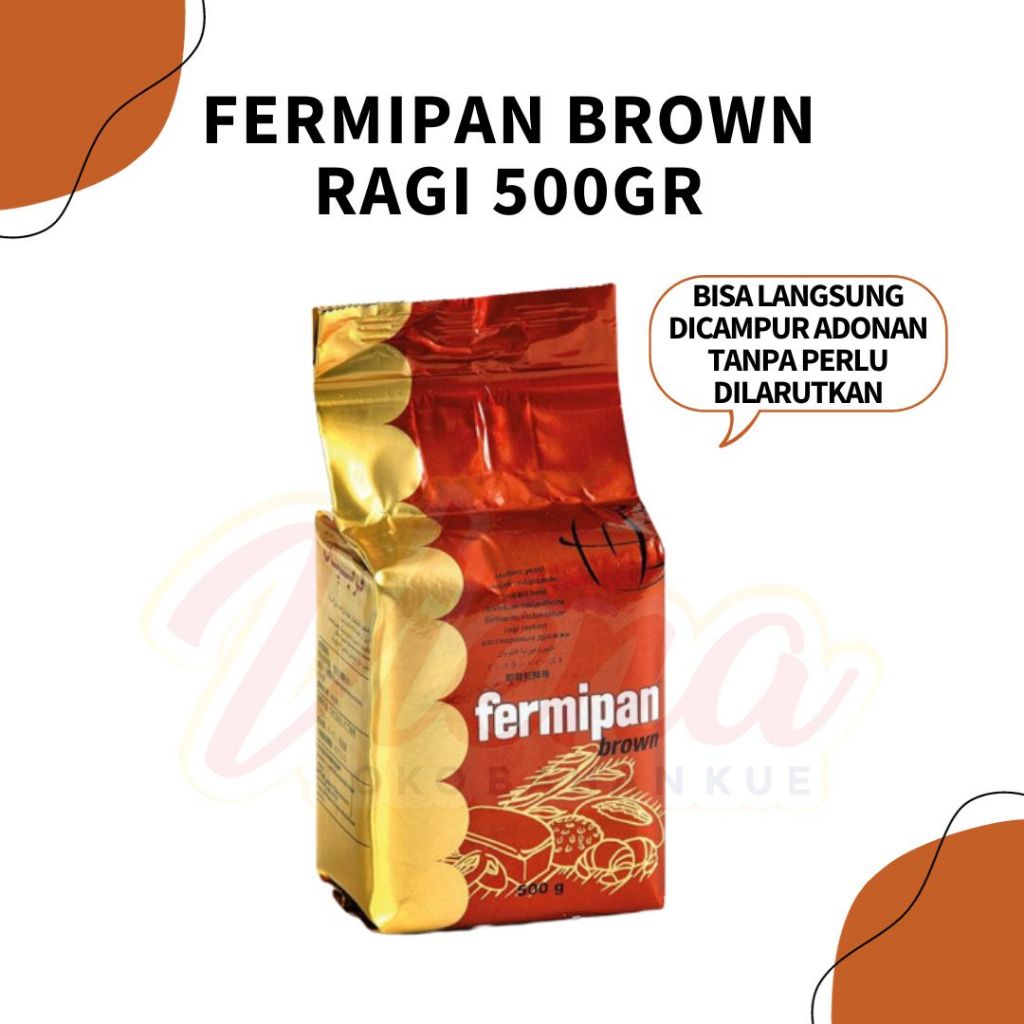 Product Description: Fermipan bisa juga di sebut dengan ragi instan. Ragi Instant Kering atau biasa disebut dry yeast sangat dibutuhkan dalam proses pembuatan roti agar roti dapat mengembang sempurna. Ragi ini berbentuk butiran kecil dan terasa kasar (seperti pasir) berwarna coklat.