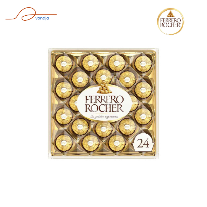 Ferrero Rocher Chocolate adalah coklat premium yang terdiri dari bola coklat lembut dengan inti kacang hazelnut, yang dibalut dalam lapisan wafer renyah dan disajikan dalam kemasan elegan berbentuk bunga. Kelezatan cokelat yang sempurna dan tekstur yang kaya menjadikan Ferrero Rocher Chocolate menjadi pilihan cokelat yang sempurna untuk dijadikan hadiah atau dinikmati sendiri.