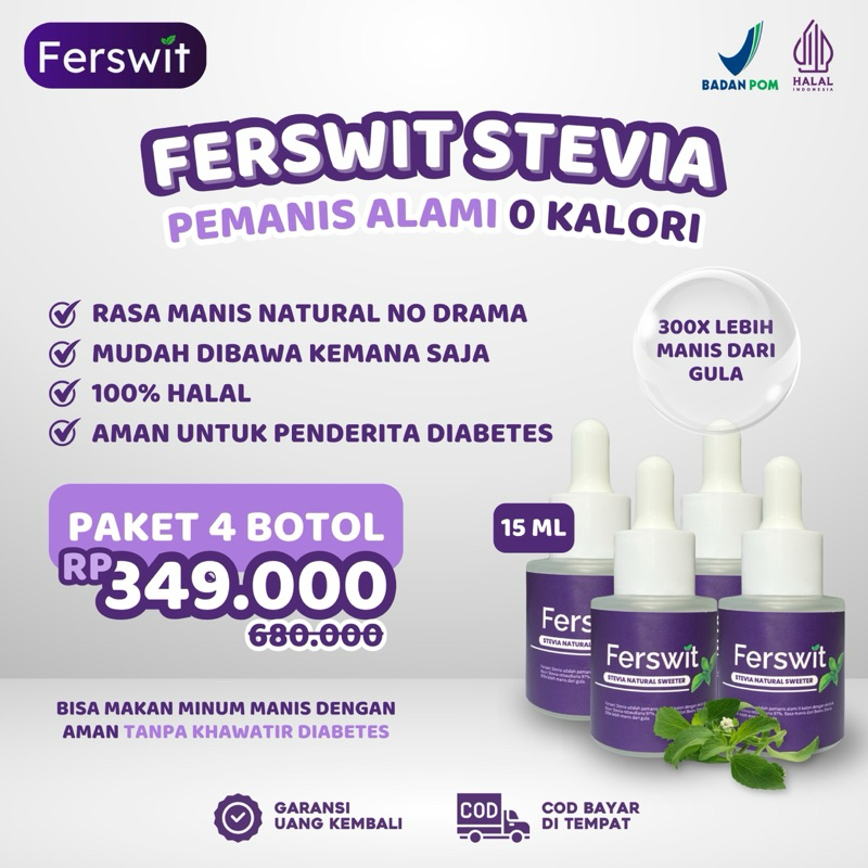 - 1 botol ferswit liquid stevia 15 ml berisi lebih dari 300 tetes