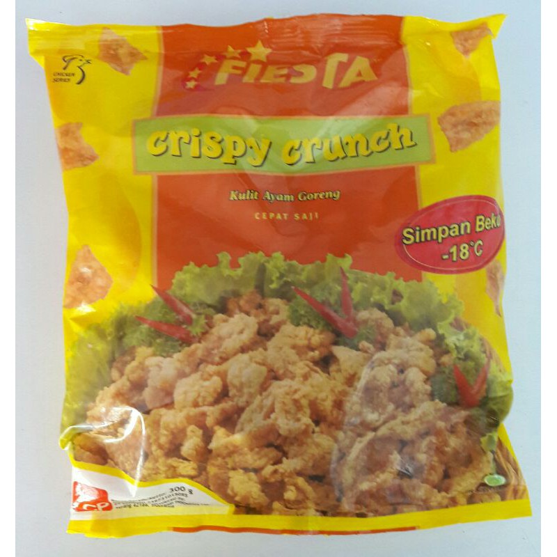 Fiesta Crispy Crunch 300gr. Kulit ayam goreng yang cepat saji. Hanya tinggal goreng bisa langsung dinikmati.