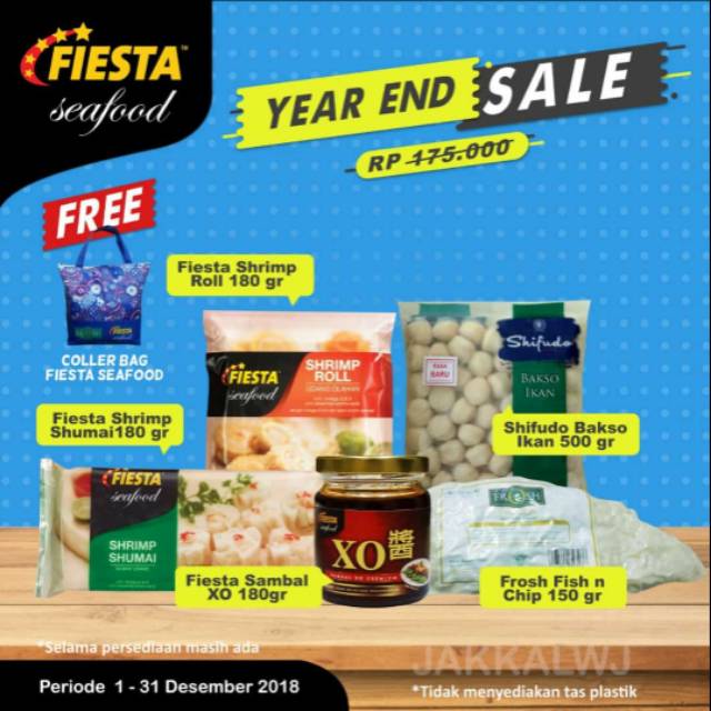 Beli fiesta seafood di toko kami sedang ada promo dan free cool bang isi lima Ter diri dari shrimp roll,shifudo bakso ikan,fiesta shrimp sumai,fresh fish camp,fiesta sambal Xo.