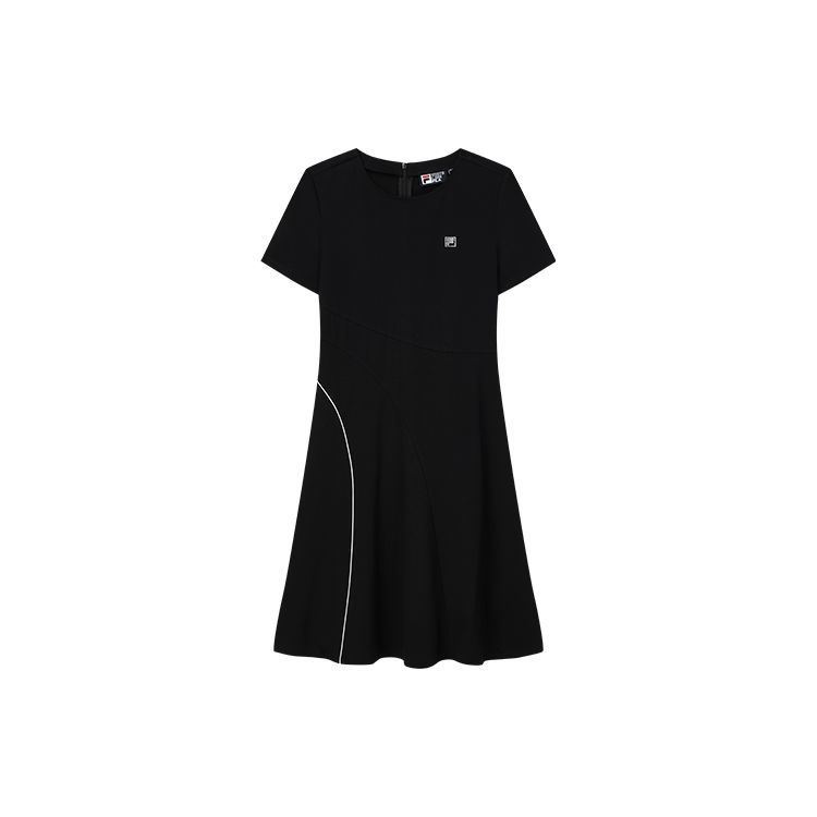 Fila Логотип Письмо Спорт Трикотаж Элегантное Приталенное А-силуэта Платье с Круглым Вырезом и Коротким Рукавом Женские платья Черный F11W217304FBK M