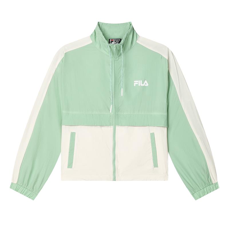 Fila Оригинальная серия Ретро Цветной блок Воротник-стойка Короткая приталенная куртка Женские куртки Светло-дымчато-зеленый F11W429708FTQ XL