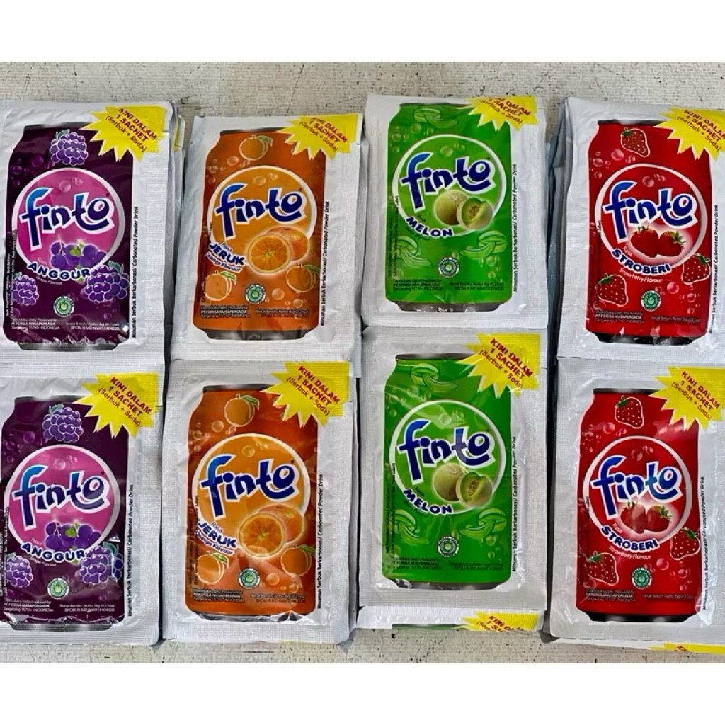 Finto adalah minuman serbuk instan bersoda dengan aneka rasa buah yang menyegarkan dan dapat disajikan baik dingin maupun hangat. Minuman ini tersedia dalam bentuk sachet yang praktis, sehingga mudah disajikan dan dinikmati kapan saja, baik untuk diminum sendiri maupun bersama teman dan keluarga.