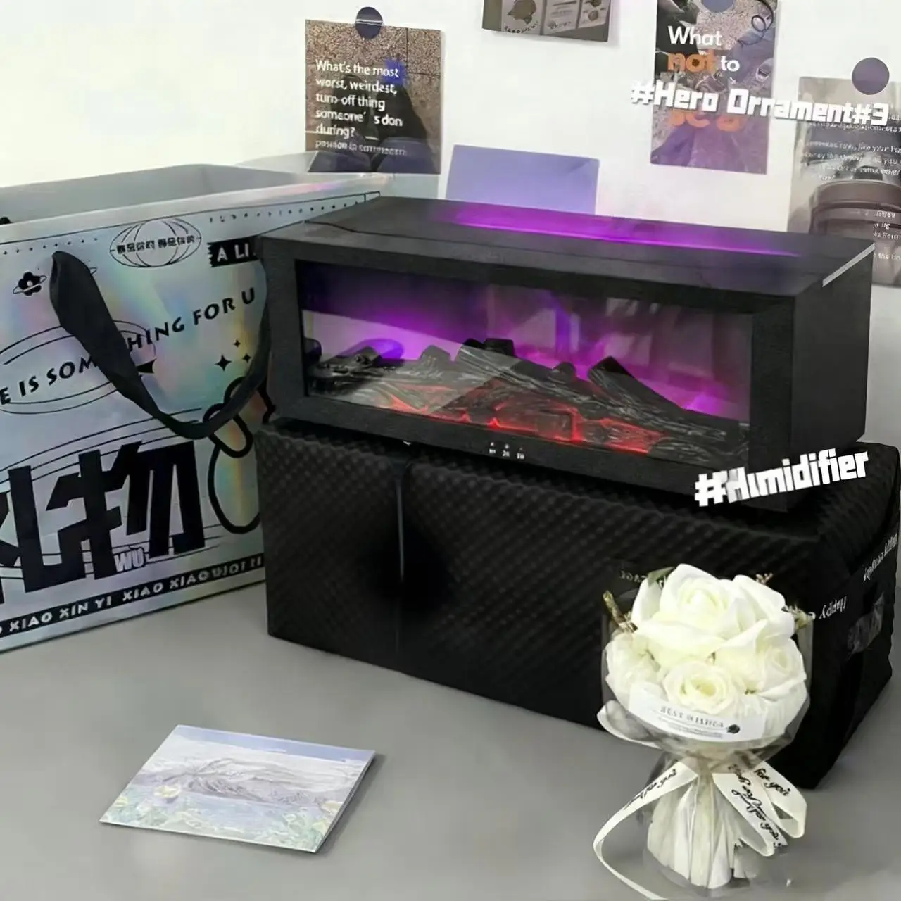Fireplace Flame Aromatherapy Machine 3D Simulation Charcoal Fireplace Humidifier Home Desktop Remote Control Colorful Atmosphere