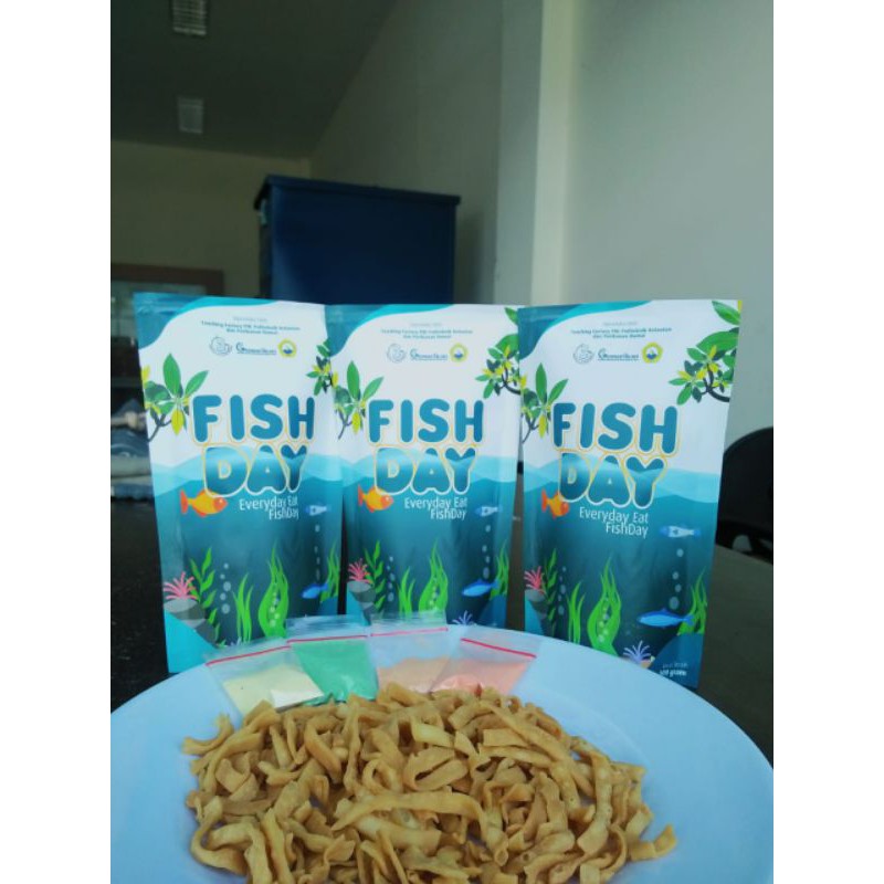 Fish Day merupakan camilan sehat berbahan dasar ikan/rumput laut/mangrove yang bernutrisi tinggi, tinggi protein rendah kalori... selain itu banyak varian rasa dan bikin nagihhh... rasa kejunya berasaaa...