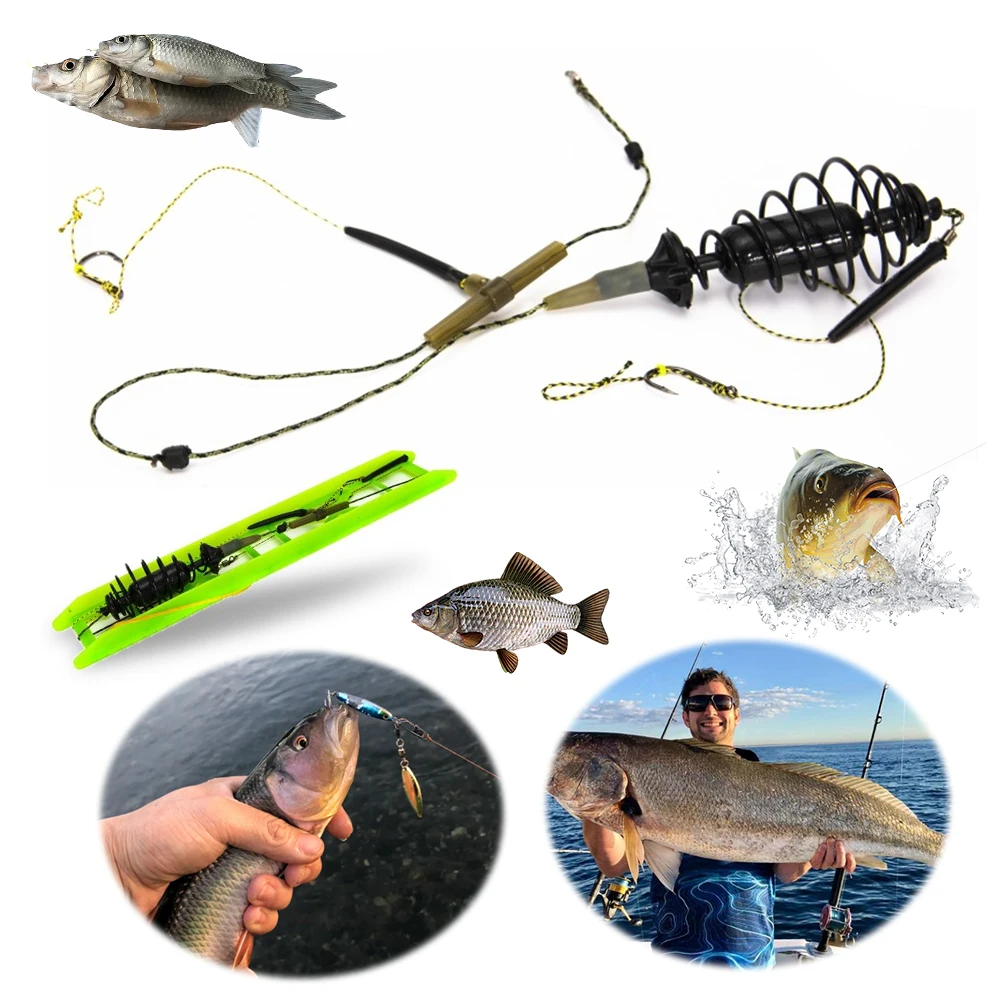 Fishing Trap Basket Long Line Carp Nesting Device with Hooks Fishing Rigs Hair Carp Rigs Tackle for Fishing Set Spring Tool