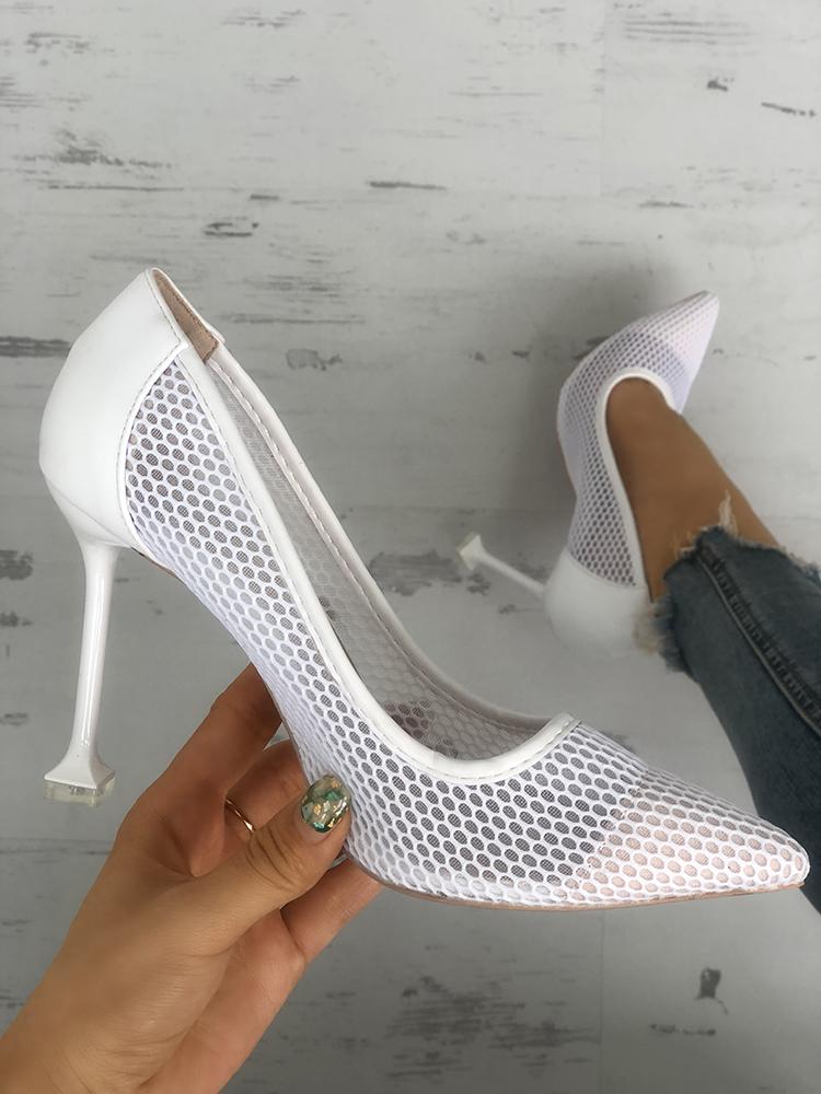 Fishnet Splicing Pointed Toe Thin Heeled Sandals