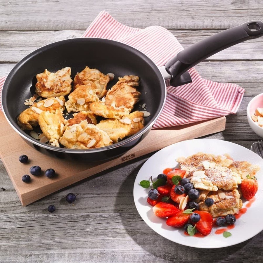 Wajan untuk menggoreng yang sehat: ringan, hati-hati, dan bebas minyak. Dengan panci pelindung Fissler menggoreng hidangan telur atau ikan bekerja dengan sangat mudah.