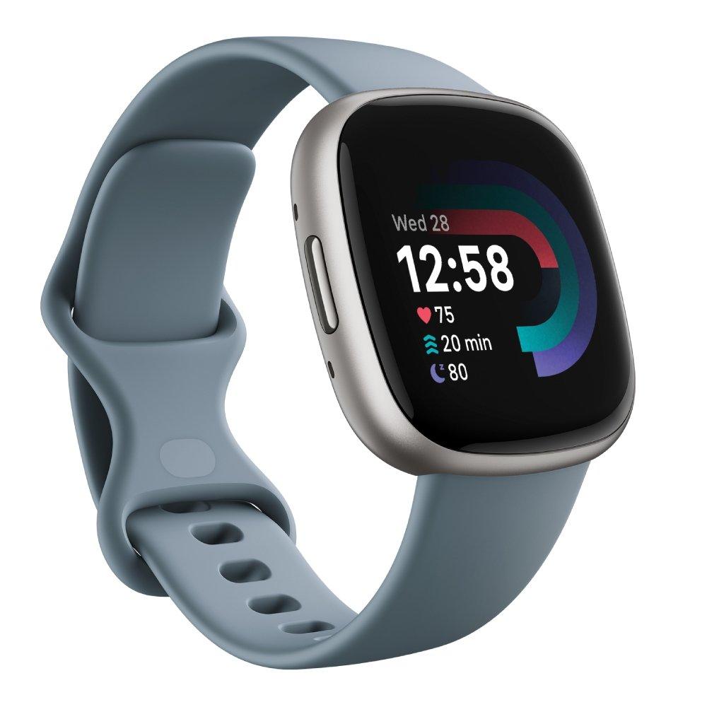 Fitbit versa 4 smart watch - waterfall blue / platinum