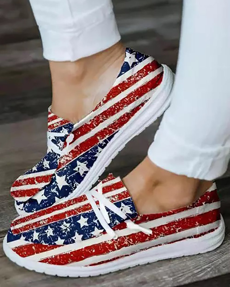 Flag Pattern Lace-up Slip On Sneakers, Multicolor