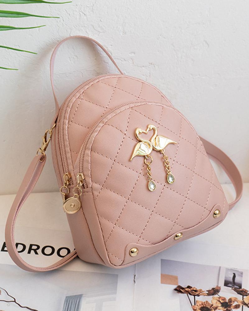 Flamingo Pattern Quilted Zipper Design Backpack Trendy School Bag, Pink