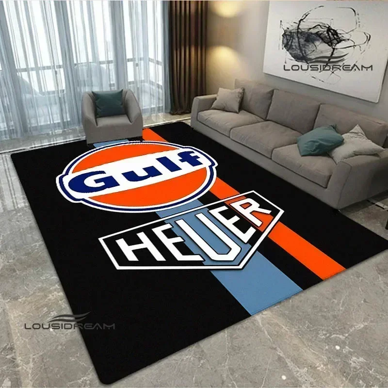 Flannel Printed Rug Gulf Oil Logo Racing Design Floor Mat Garage Living Room Decor