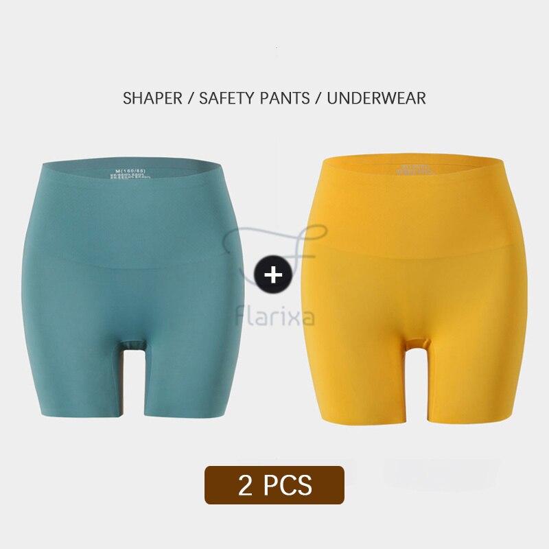 Flarixa, 2 шт., 3 в 1, защитные брюки, бесшовные женские шорты с высокой талией, корректирующее фигуру, нижнее белье размера плюс, тонкие трусы-боксеры из ледяного шелка XXL жёлтый/зелёный