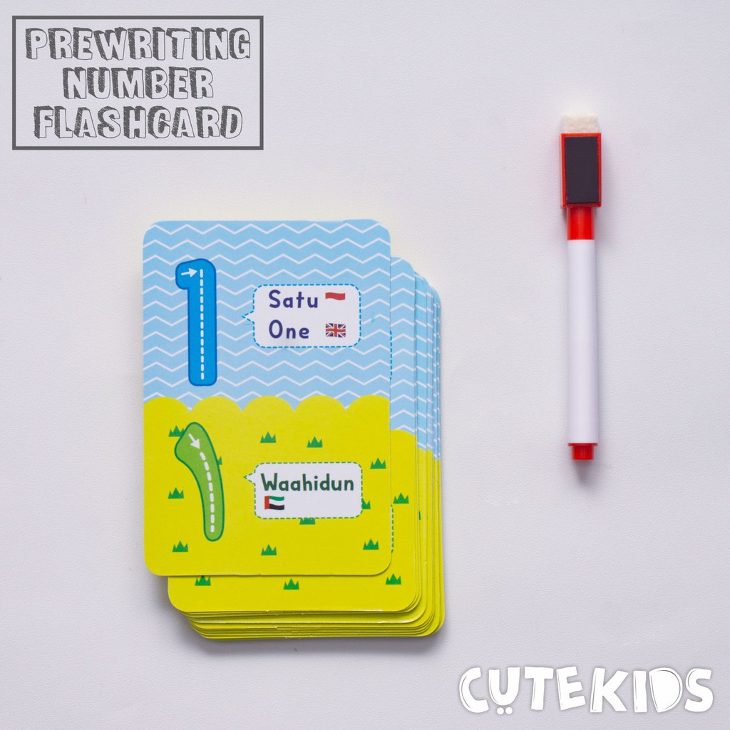 Berisi materi angka mulai dari angka 1 sampai dengan angka 20 di bagian depan merupakan bentuk angka dalam 3 bahasa (Indonesia, Inggris, & Arab) dilengkapi dengan garis putus-putus pada setiap angka untuk belajar menuliskan setiap bentuk angka. Pada bagian belakang kartu terdapat ilustrasi gambar menarik dengan jumlah yang mewakili dari setiap angka di bagian sebaliknya.