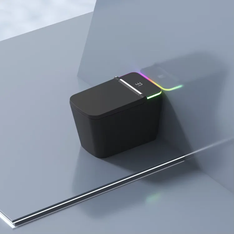 Floor Standing S-Trap Black Square Smart Toilet Automatic Flush Flip Intelligent Bathroom Toilet with Voice Control