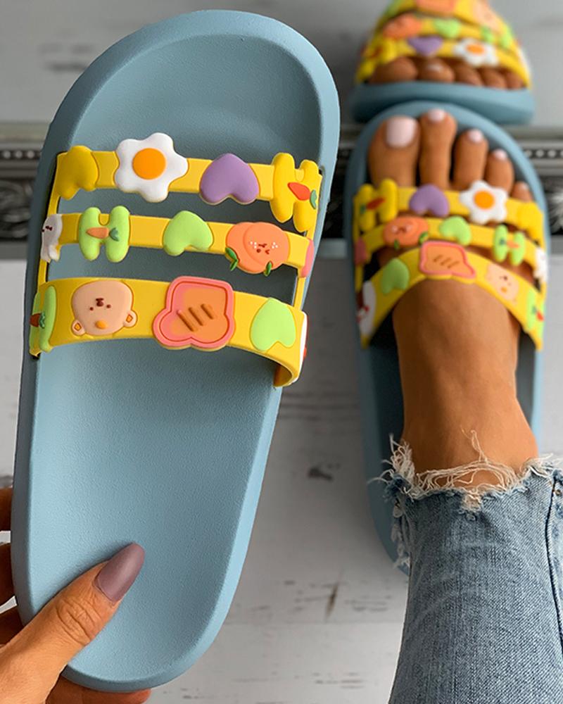 Floral Graphic Pattern Open Toe Flat Sandals, Blue