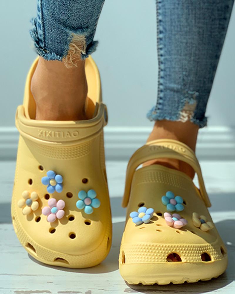 Floral Pattern Flatform Vented Clogs, Yellow