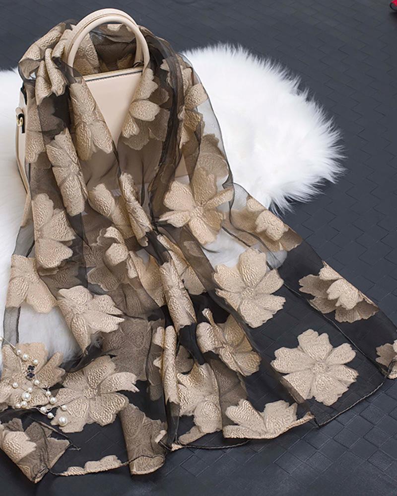 Floral Pattern Mesh Scarf, Champagne