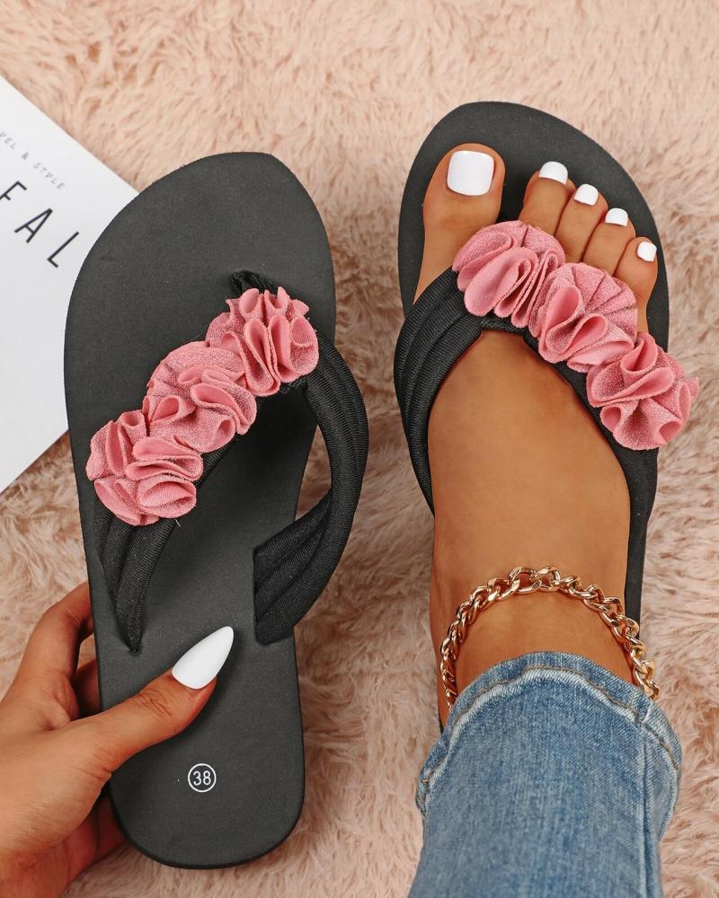 Floral Pattern Toe Post Flip Flop, Pink