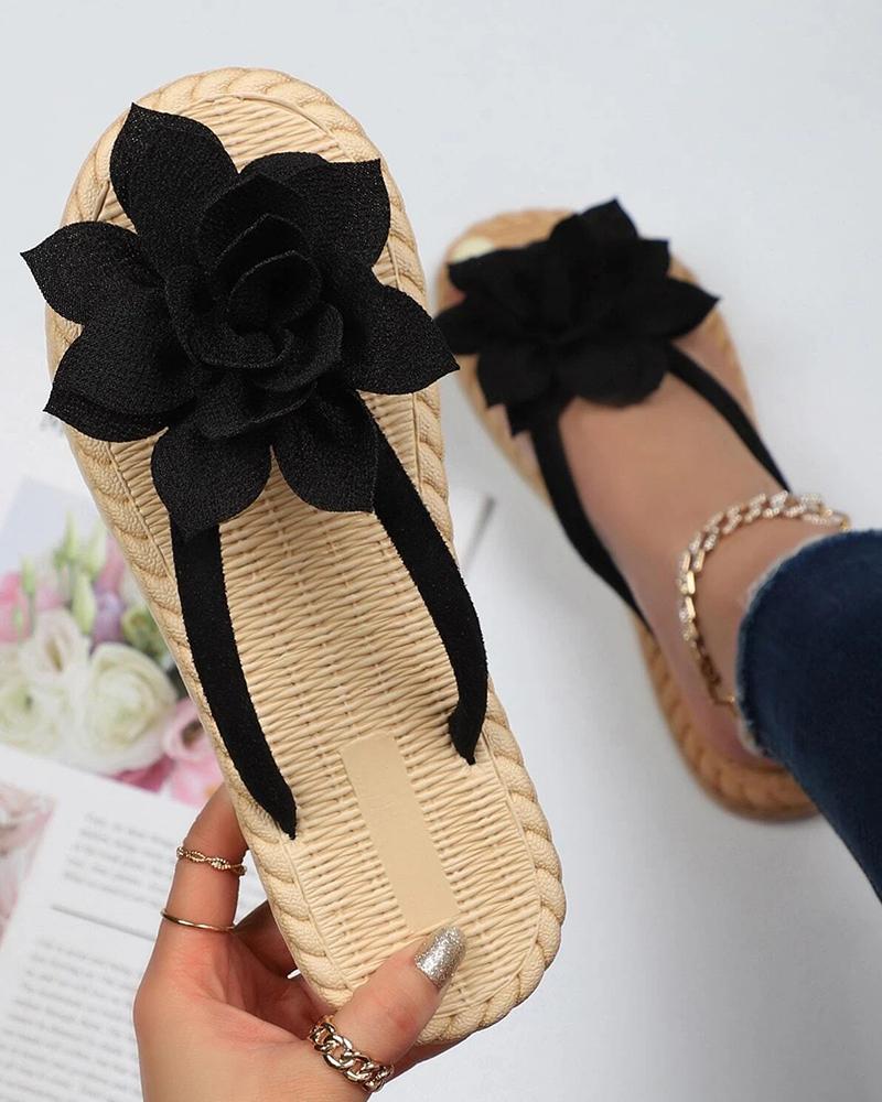 Floral Pattern Toe Post Flip Flops, Black