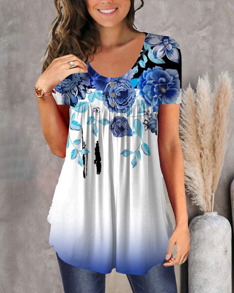 Floral Print Ruched Detail Flowy T-shirt, Style3