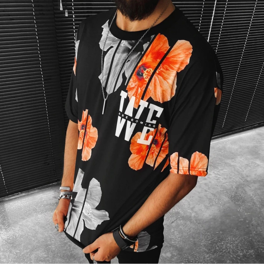 tees & shirts,floral print short-sleeved t-shirt