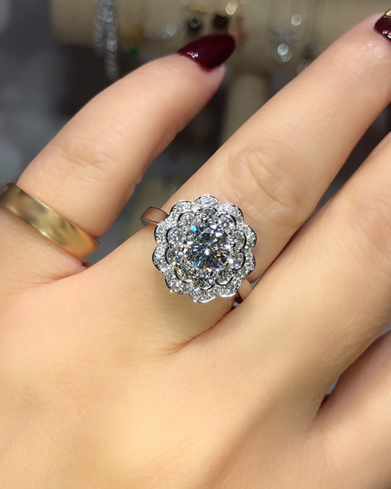 Floral Shaped Rhinestone Pattern Ring, Silver