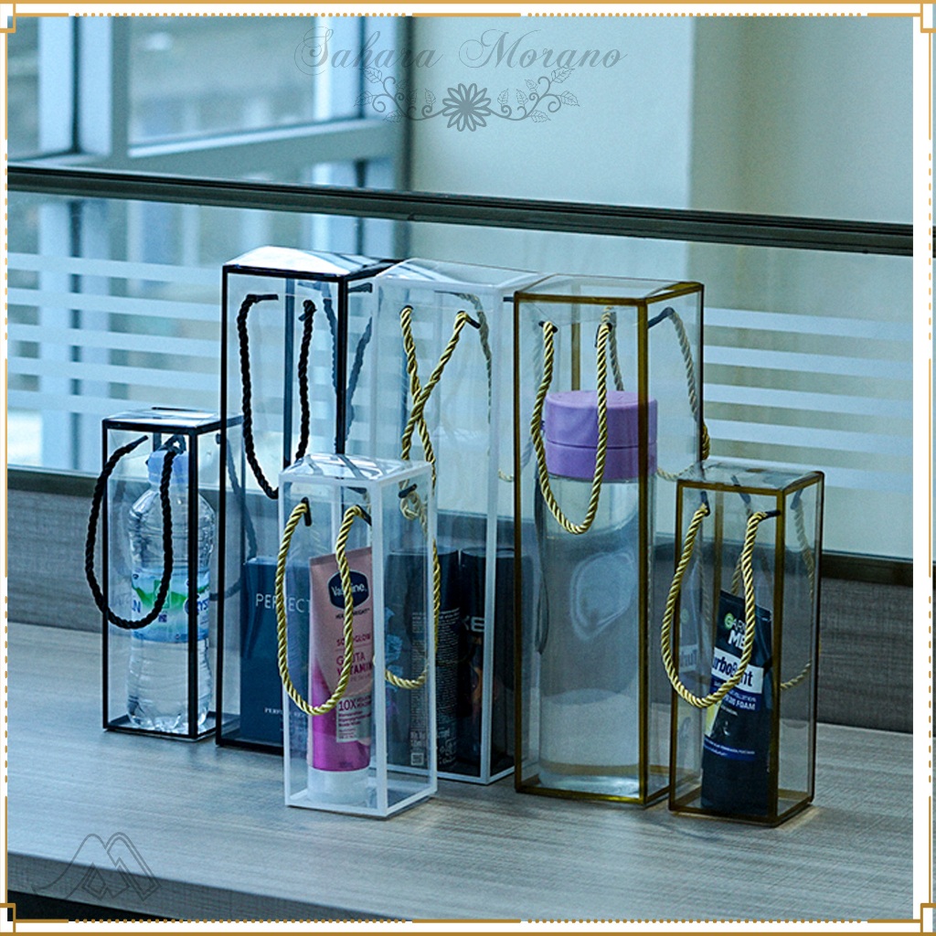 Flower Box Transparant PVC Handle Tali Flower Bag Box Souvenir Box Bunga Multifunction Box