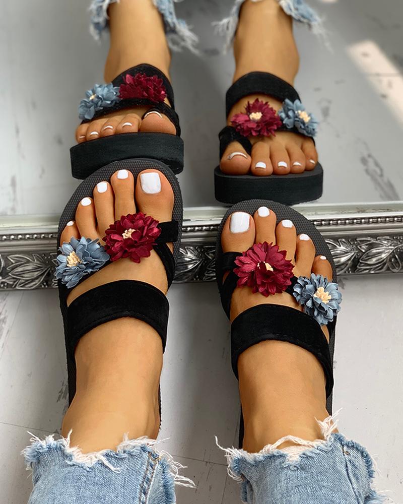 Flower Embellished Toe Ring Design Sandals, Red