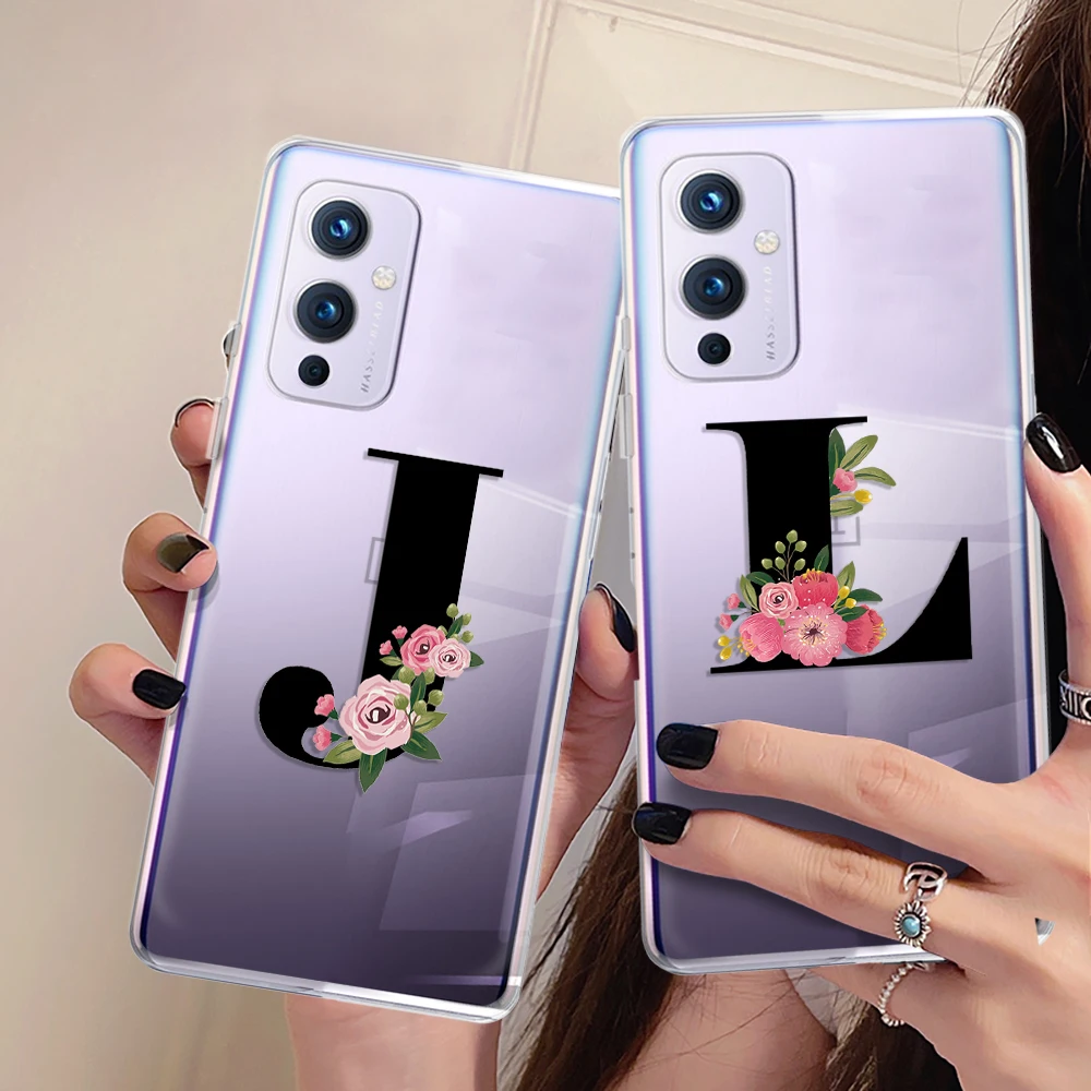 Flower Letters Case for OnePlus 7 Pro 8Pro 8T 9R 9Pro 6 6T 7T Z Nord N20 N10 2 5G N100 10Pro Transparent Soft Silicone Fundas
