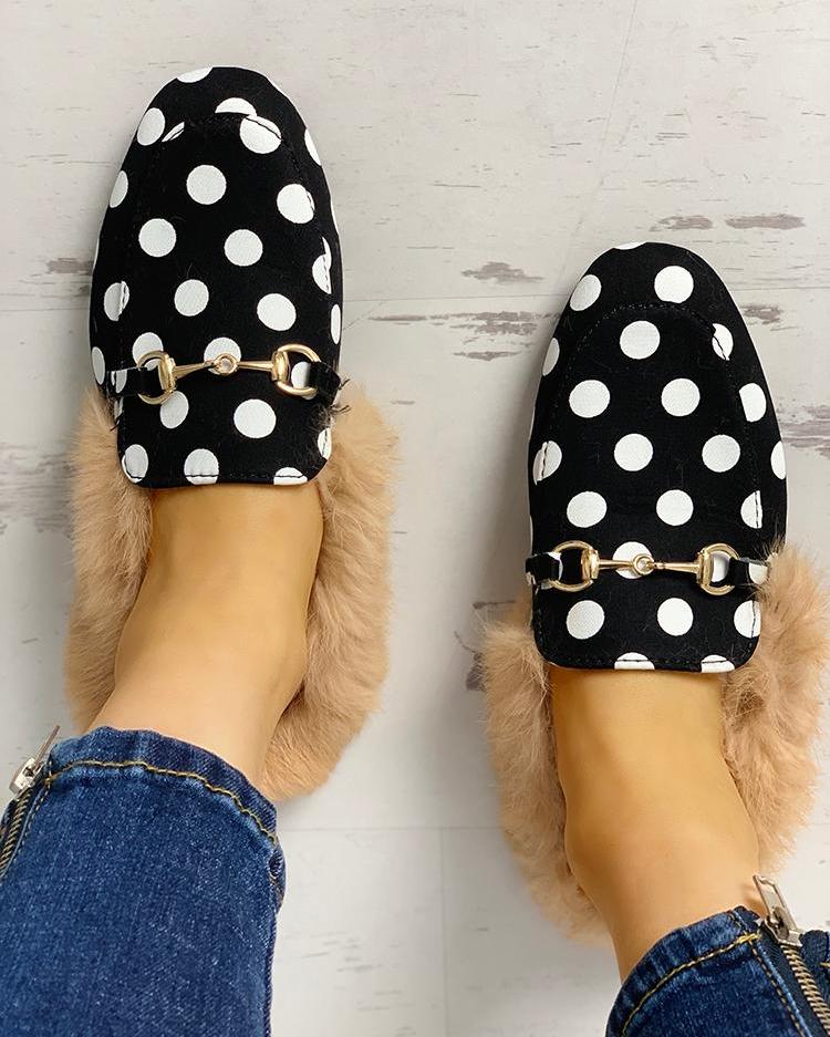 Fluffy Dots Pointed Toe Flat Shoes, Black