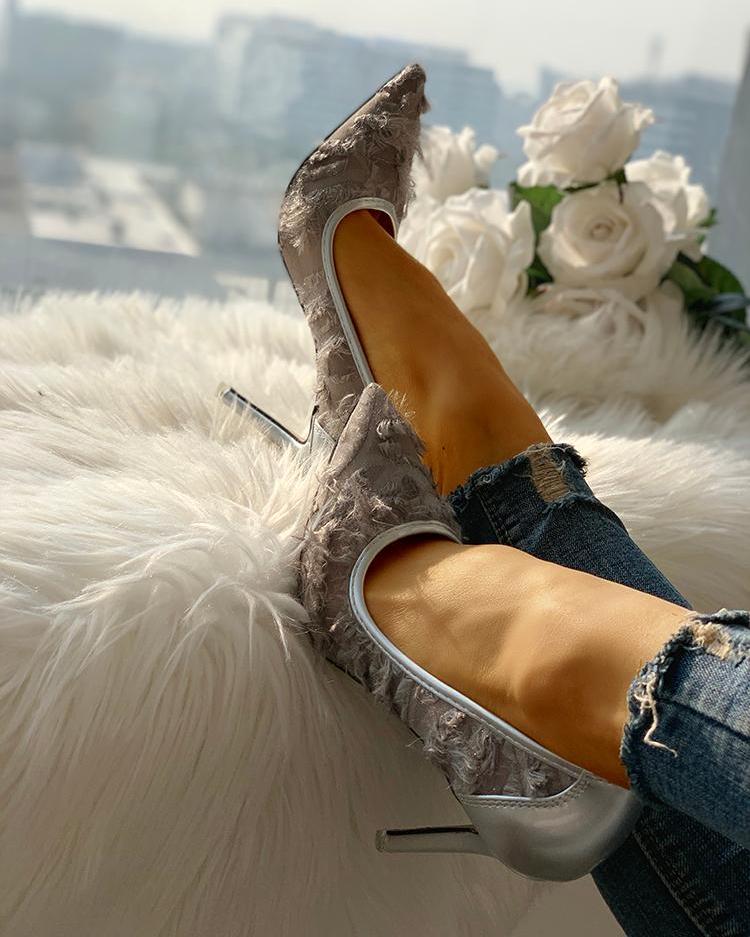 Fluffy & Mesh Pointed Toe Heels